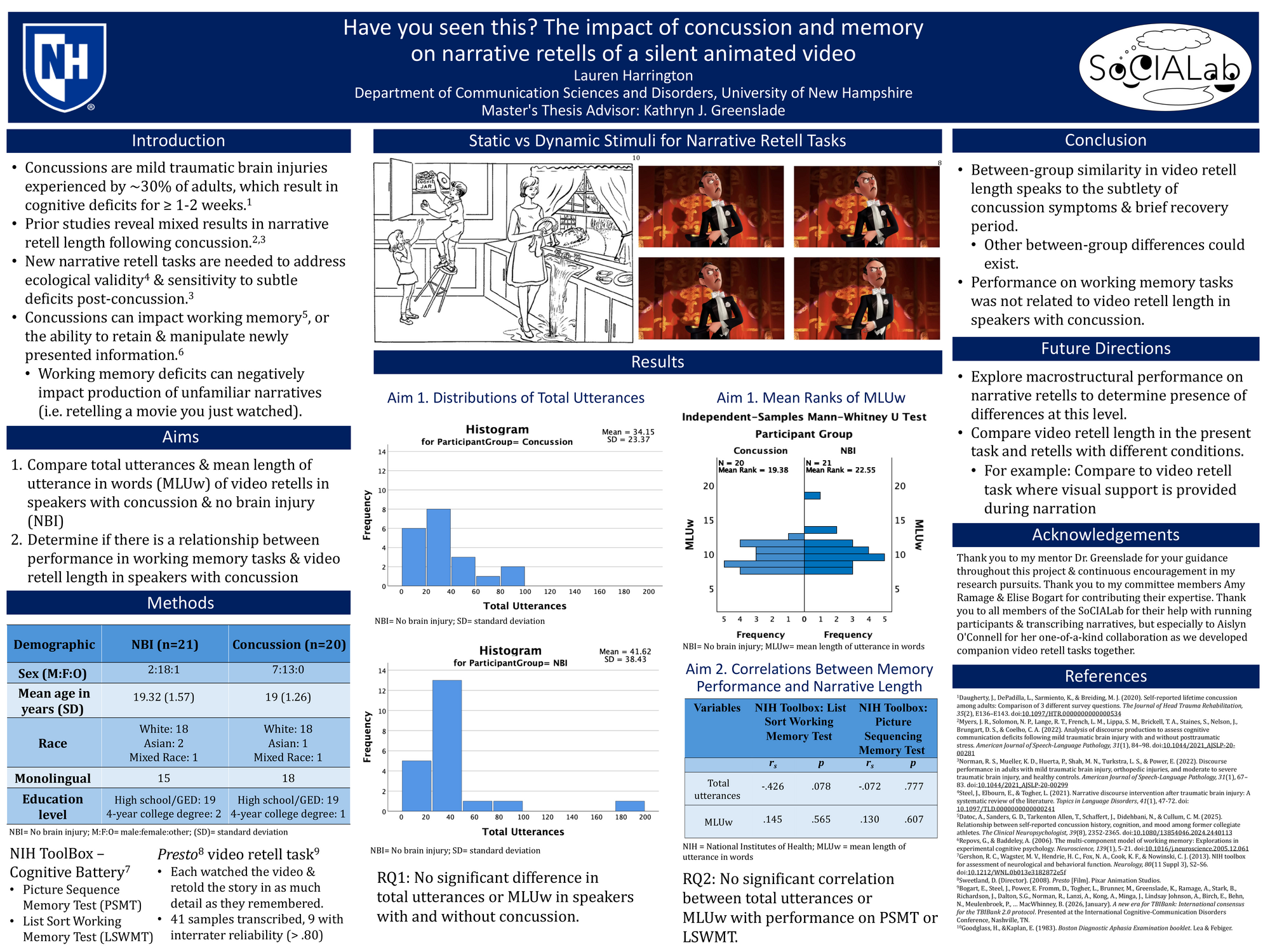 Have you seen this? Impact of concussion & memory on narrative retells of silent animated video