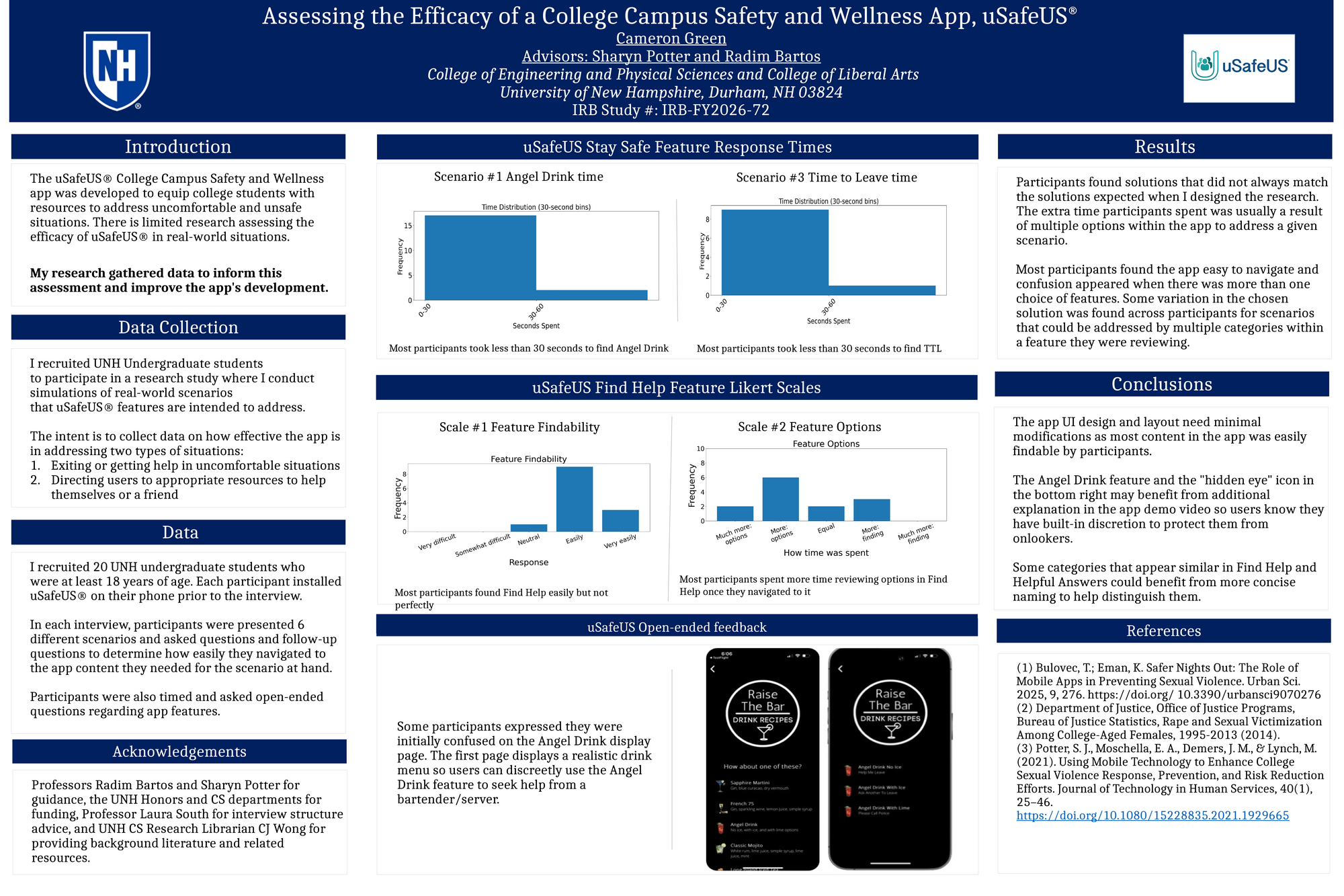 The revolution of smartphone technology opened a new avenue for college students to keep themselves safe using uSafeUS®, a college campus safety and wellness app. The app has features for exiting uncomfortable situations and finding resources to address sexual violence and other situations after they have occurred. However, there is limited research assessing its efficacy. My thesis seeks to answer the question “How does a college campus safety and wellness app help its users navigate two types of situations?”. The two types of situations are (1) exiting or getting help in uncomfortable situations and (2) directing users to appropriate resources to help themselves or a friend. The findings obtained from my research will be used to further the development of uSafeUS® for improved usability.