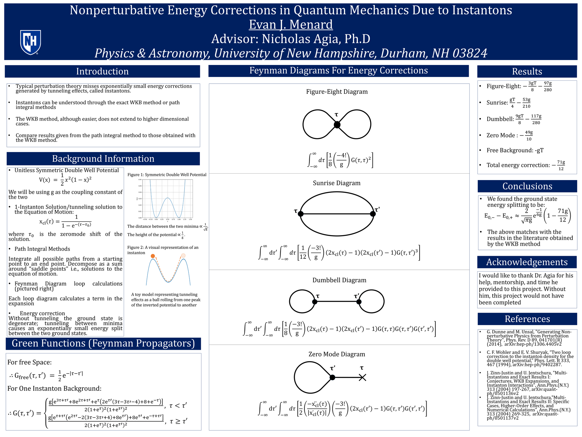 For the nonrelativistic quantum mechanics of a particle in one dimension, the exact nonperturbative energy spectrum for a particle moving in a potential with degenerate minima, whose locations are specified by a small parameter g, has been obtained in certain examples using the so-called exact-WKB method. However, the exact-WKB method does not extend to higher dimensional cases. So, I have calculated the energy correction from the one instanton background using path integral methods, which are able to be applied to higher dimensional cases. I elected to use a symmetric double-well potential as it has been studied rigorously in the past and has degenerate minima. The instanton contributions lift the degeneracy on the the minima which allows us to find the difference in energy of the new distinct minima. To calculate this value, I first calculated the Green function for the one-instanton background. This function was used as the Feynman generator for the two loop disjoint Feynman diagrams, which I evaluated. After subtracting the contribution of the free background, I was left with the final energy correction of -71g/12. This result matches with the literature using the exact-WKB method, verifying my result is accurate.