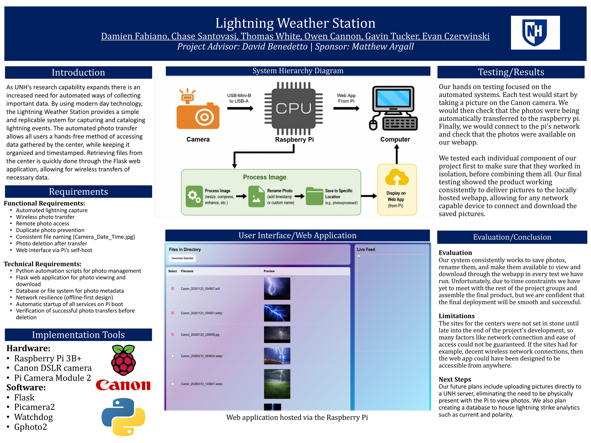 The Lightning Weather Station is an automated photography system designed to capture, store, and wirelessly