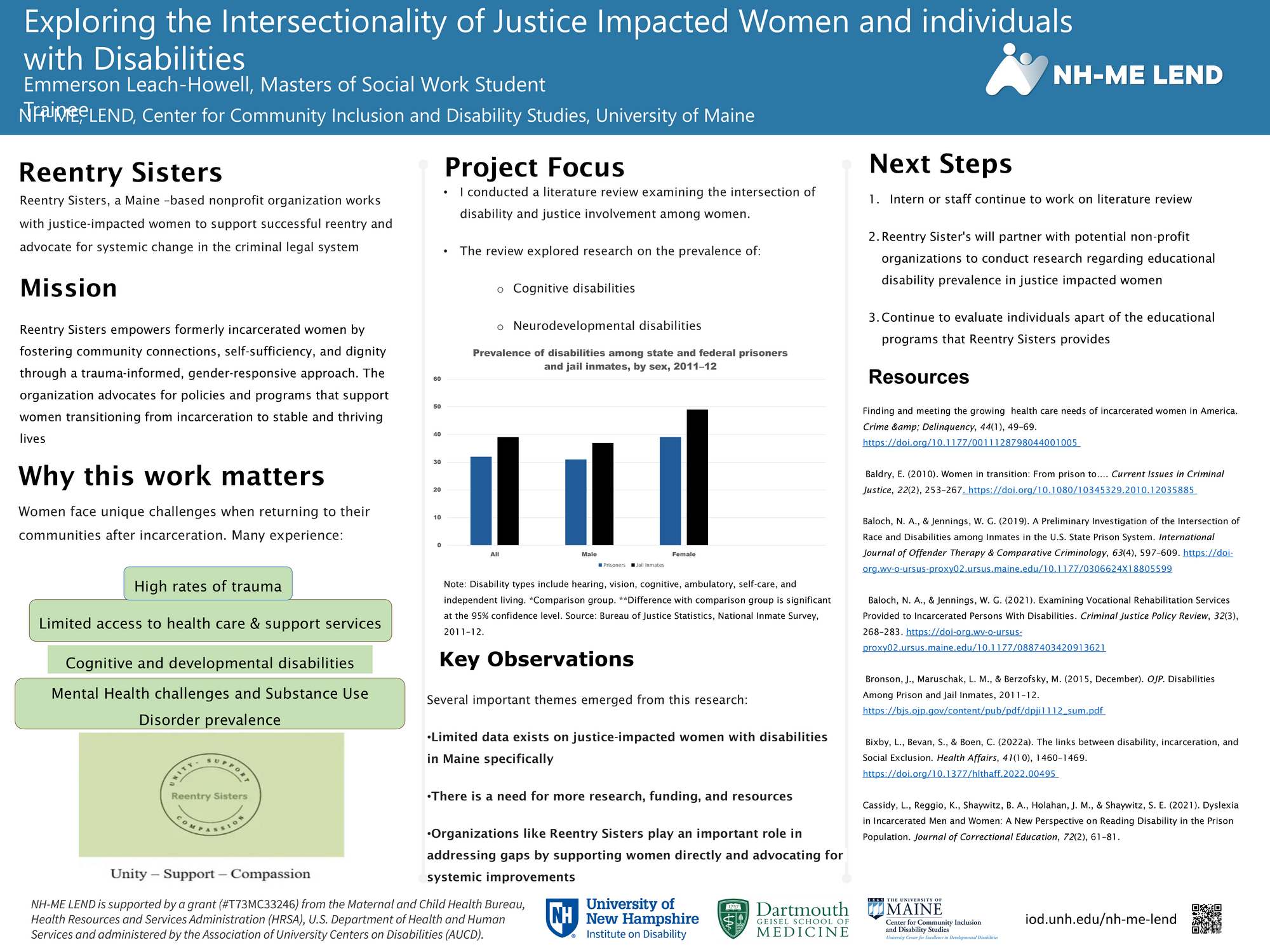 Research poster presentation on the intersectionality of justice impacted women and women with disabilities.